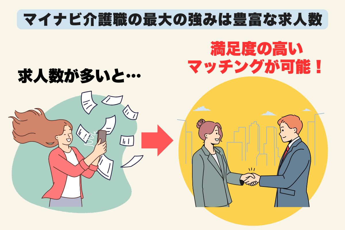 また、もちろん数が多いだけではなく、表には出回らない超優良な非公開求人や、中にはマイナビ介護職にしか掲載のない求人も多数と、求人の質も高いのが特徴です。