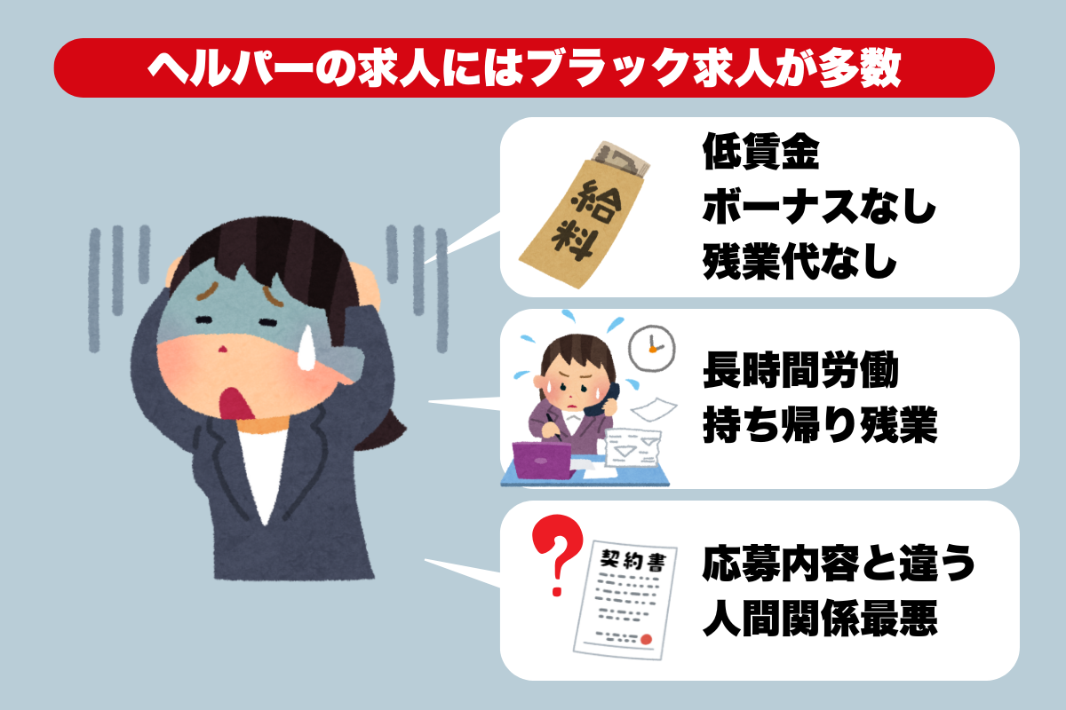 ヘルパーの求人には、ホワイトな求人に見せかけたブラック求人が多数隠れています…!